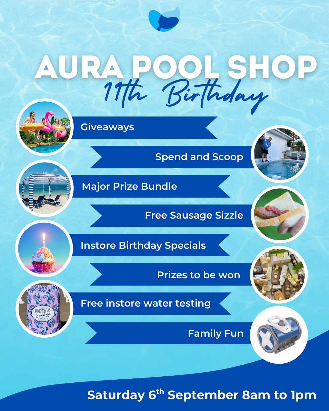 Aura Pool Shop Promotions Aura Pool Shops 11th Birthday!Come along and celebrate our 11th Birthday on 6th September 2025! get in touch Sum Bum SalePop in store to check out our epic Sun Bum products on sale, while stocks last! get in touch Interested in any of our promotions? talk to our team